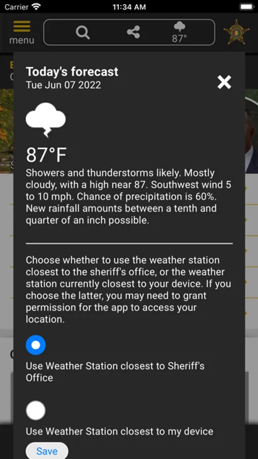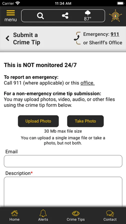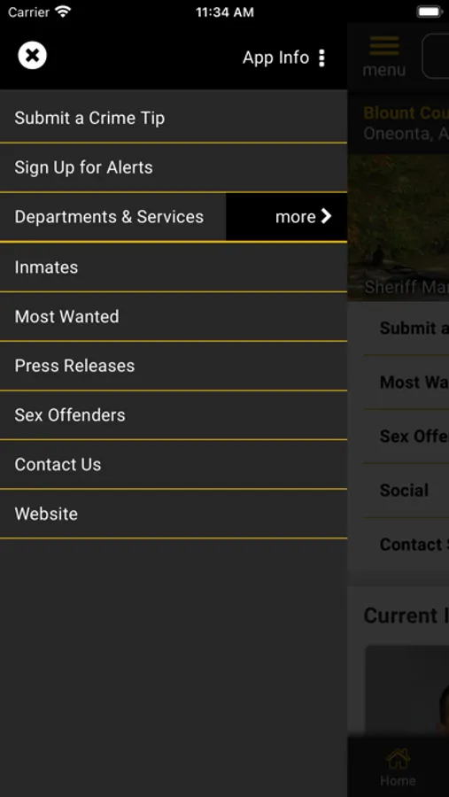 The app has public information for press releases, inmates, most wanted, sex offenders, special alerts, and FAQ's. Crime tips and contact us messages can be sent to the S.O.