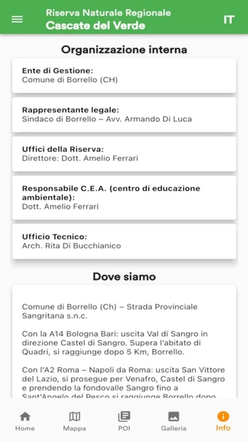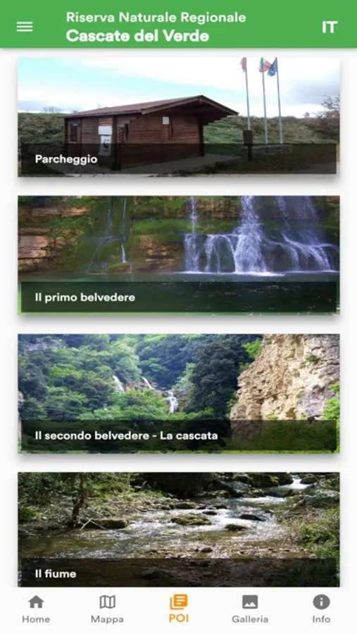 Cascate del Verde è un’applicazione italiano/inglese gratuita tramite la quale approfondire e arricchire la propria conoscenza delle Riserva. Tramite la funzionalità della mappa avrai la possibilità di visualizzare la posizione dei maggiori punti di interesse del luogo e vedere in tempo reale la tua posizione rispetto ad essi. Inoltre, cliccando sui punti, accederai alla loro pagina descrittiva direttamente dalla mappa.