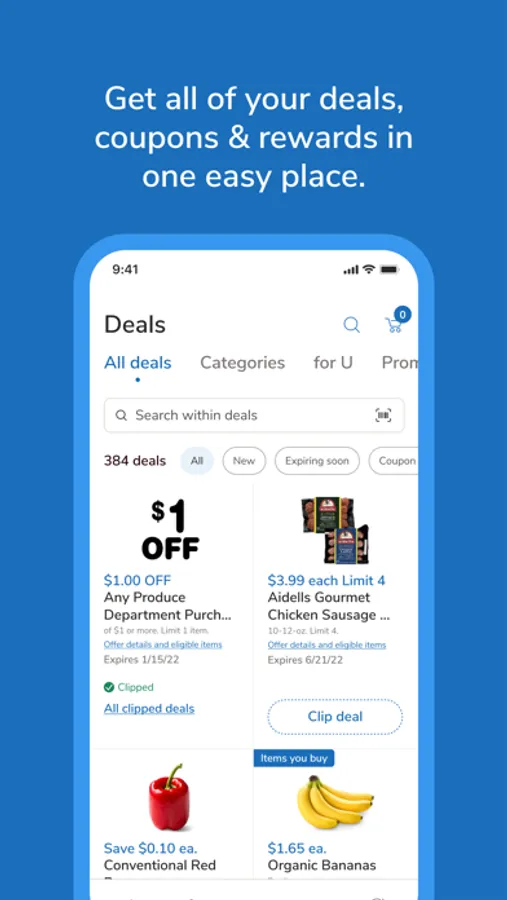 all-in-one app. Get everything you need - from fresh produce and deli orders to pet food and prescriptions - in store or for pickup or delivery. Find and save with weekly deals, coupons and offers. And, easily earn and redeem rewards as you shop.