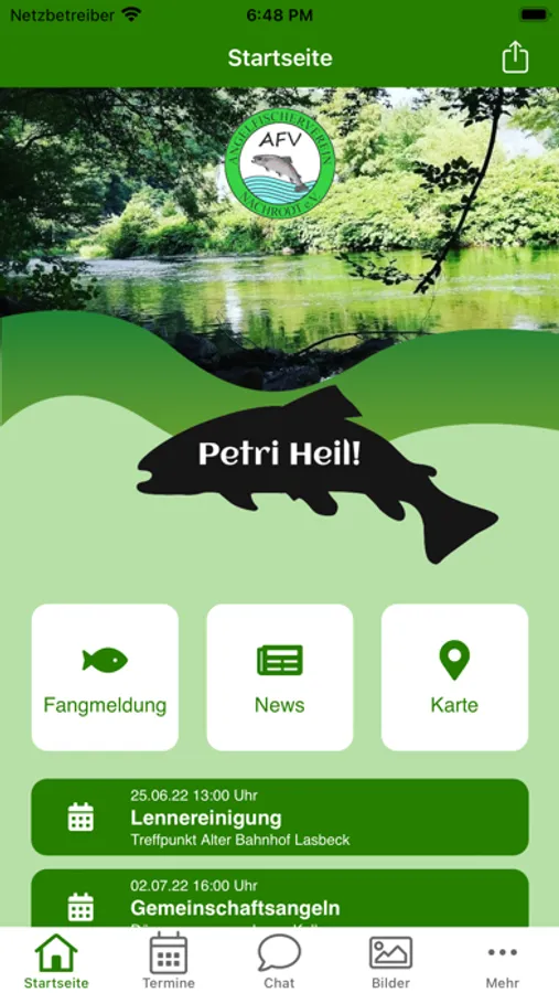 Dies ist eine APP für die Angler des AFV Nachrodt e.V., Du willst immer auf dem neusten Stand sein und Dich mit anderen Mitgliedern austauschen oder mit gleichgesinnten, dann bist Du hier genau richtig. Willkommen beim AFV Deiner App für kurze Wege und Fragen.