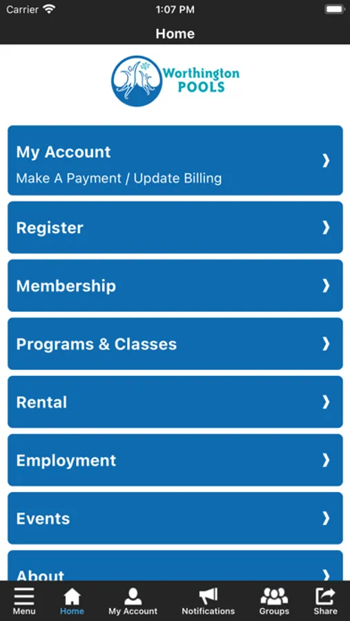 This Worthington Pools app allows you to manage your account with ease, registering for classes and special events. You'll also receive important notifications about class changes, closings, registration openings, special announcements, and upcoming events.