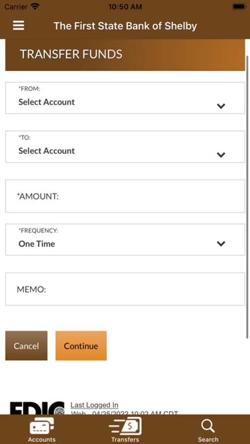 The First State Bank of Shelby App Allows you to easily and securely access our accounts on the go! With your FREE First State Bank of Shelby App you can view Balances and Transaction history as well as perform funds transfers and loan payments between accounts within First State Bank. You must be a registered Online Banking customer to utilize this App.
