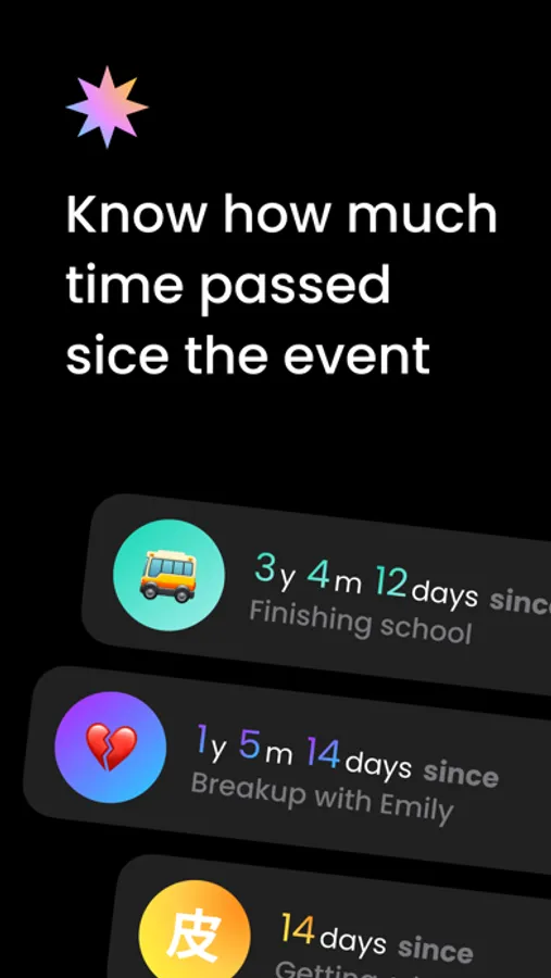 With Happen, you can track the time passed since and left before your life events. To keep things fun, you can choose beautiful gradients and emojis to describe your events visually.