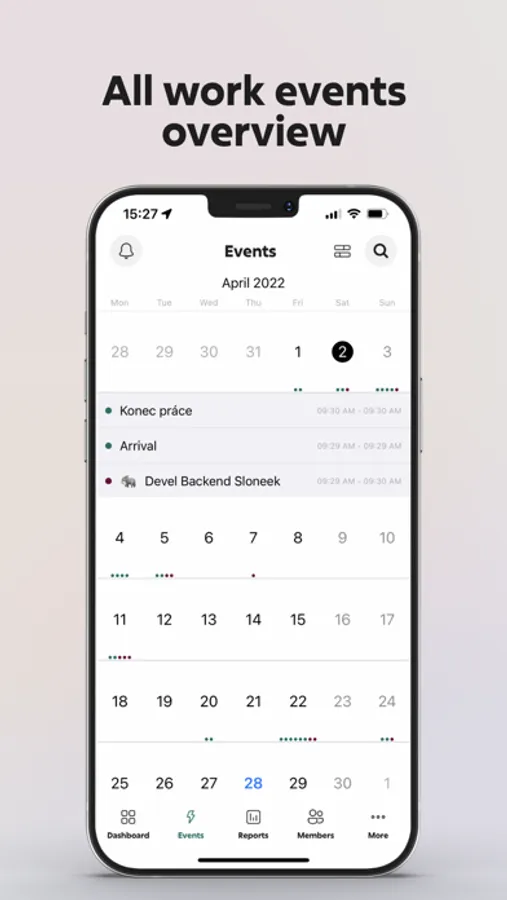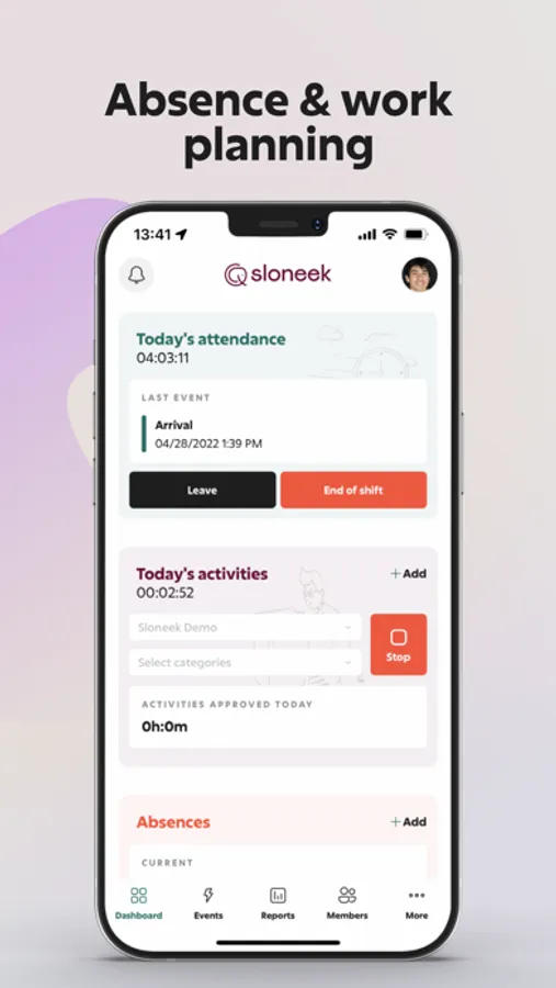 Team members register their arrival to work (clock-in) and departure (clock-out).
