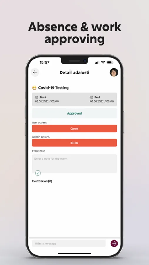 Commenting on attendance events, for example when an employee wants to explain a reason for early leave or late entry.