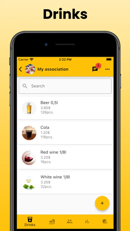 Add drinks to the drinks list and invite members to the group and members can enter / count the drinks from the drinks list.