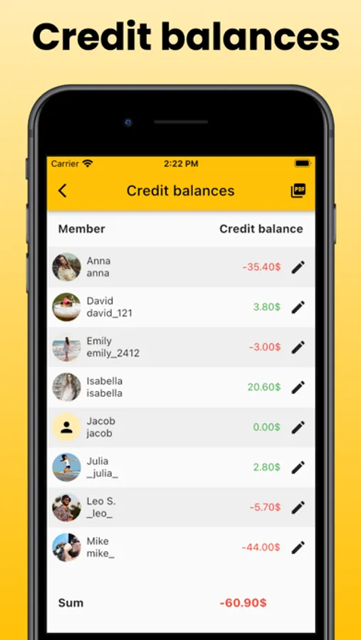 - The drinks attendant sees the account balances of the individual members at a glance.