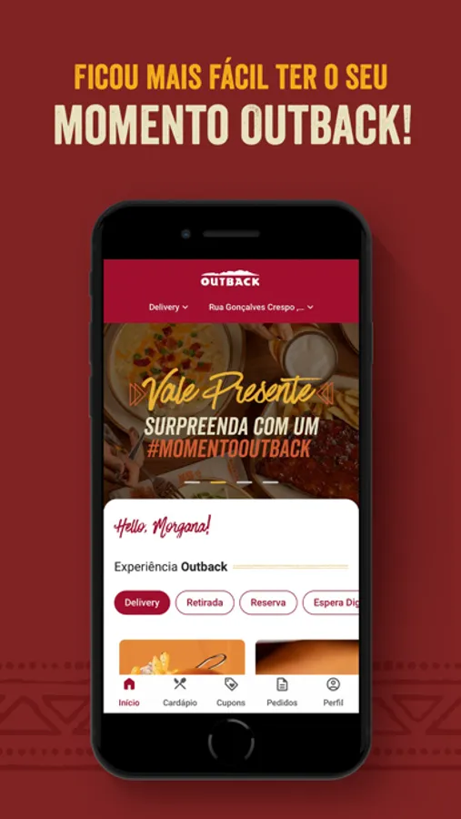 Ganhou um gift card para ter um momento Outback? Aproveite e pague o seu pedido direto pelo app.