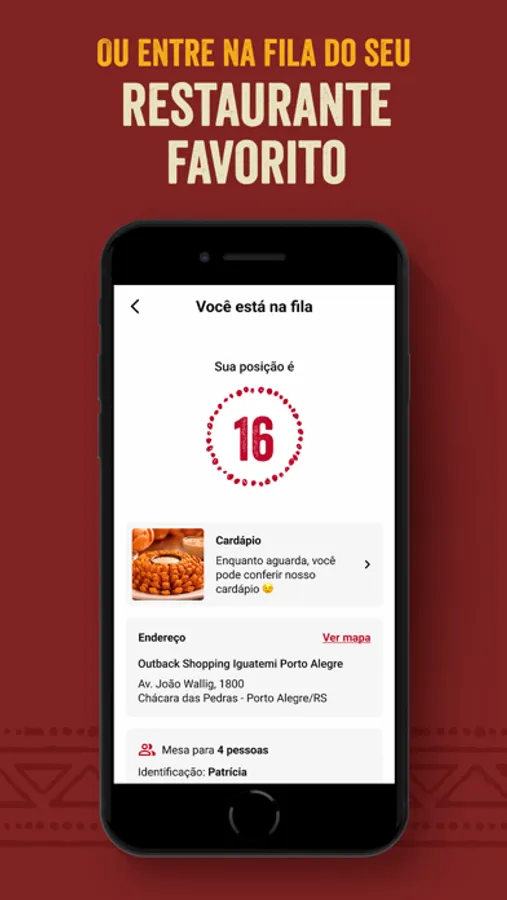 Garanta o seu lugar antes de sair de casa. Entre na fila digital pelo app antes mesmo de chegar no restaurante.