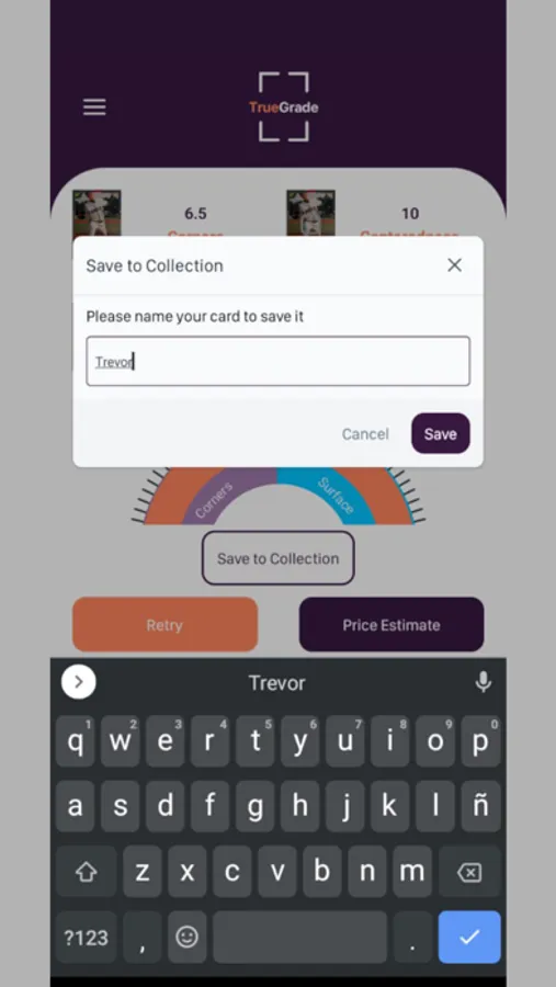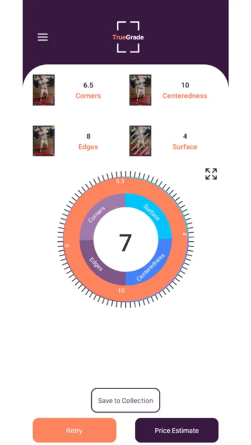 True Grade is an auto-grading and pricing sports card service for individuals who are looking for a quicker and easier way to have their cards graded. Users can create an account that will allow them to take a photo of their card, grade it on the spot, and save their card in a collection for their records. Cards are graded based on these factors: Centering, Corners, Edges, and Surface. True Grade gives each attribute a grade of 1-10, then combines those to give the card a final grade of 1-10. After receiving a grade, users can utilize True Grade’s pricing feature to discover what their card is worth based on recent market sales.