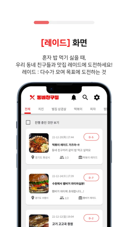 동네친구들과 함께 레이드방에서 모여 맛있는 음식을 드셔보세요!