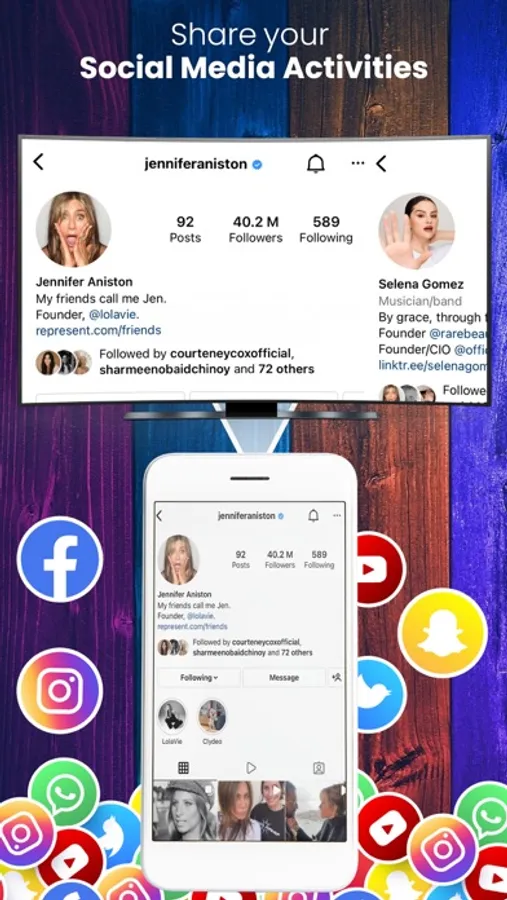 Screen Mirroring App - TV cast allows you to connect and enjoy streaming in high definition on smart TV screens. The app supports various TV brands. You can now cast video, images, and movies on big screens by mirroring your device to TV screens without any delay.