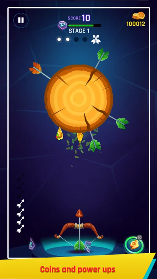 Shoot the Arrows into the logs to break them. Slash the apples and unlock new weapons Swords, knives, Arrows, and bows. Become a boss and acquire amazing arrows.