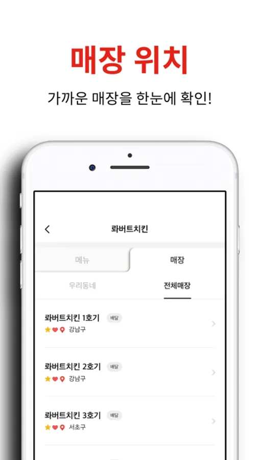 롸버트치킨 앱을 통해 가까운 매장을 한눈에 확인하시고 간편하게 롸버트치킨을 즐겨보세요!