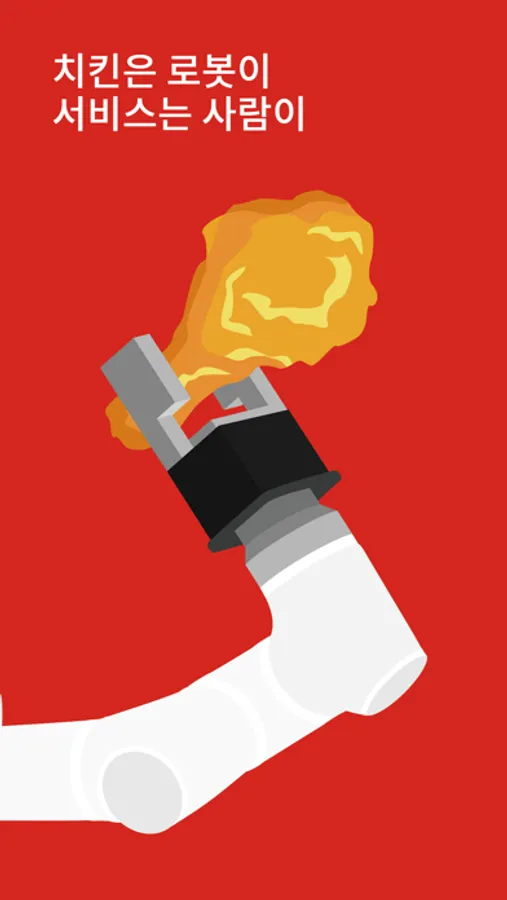 100% 국내산 신선한 냉장육"을 사용하여 로봇이 정확하고 균일하게 조리한 맛있는 치킨, 롸버트치킨 공식 전용앱이 출시되었습니다.