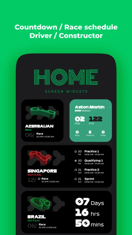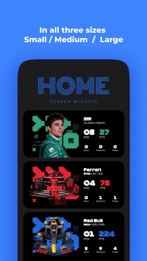 • Widgets of Champions: Choose your favourite World Champion to decorate your home screen.