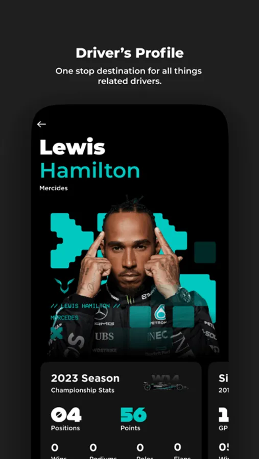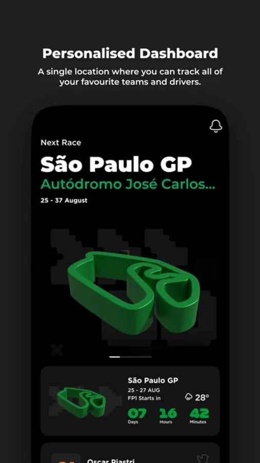 • Favourite Driver: Track your favourite driver's wins, podiums and Championship standing at a glance.
