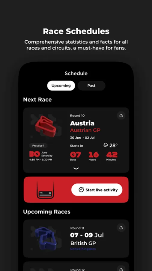 • 2023 Countdown: Set a countdown timer to your favourite season race.