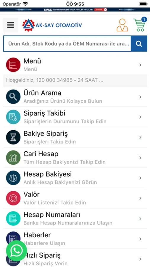 Aksay Otomotiv B2B uygulaması sayesinde, Ürünlere ve Ürün fiyatlarına ulaşabilir, Siparişlerinizi oluşturabilir, Sipariş süreçlerinizi takip edebilir, Cari Hesap Kontrolü yapabilirsiniz.
