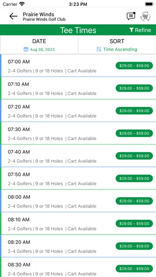 Prairie Winds Golf Club gives you access to an on-course rangefinder, live scoring system, course information, weather updates, tee-time booking service, and messaging systems functions. Additionally, the Prairie Winds Golf Club app may be used to sign up for events, view your membership portal, order food and beverage, and receive course promotions at Prairie Winds Golf Club.
