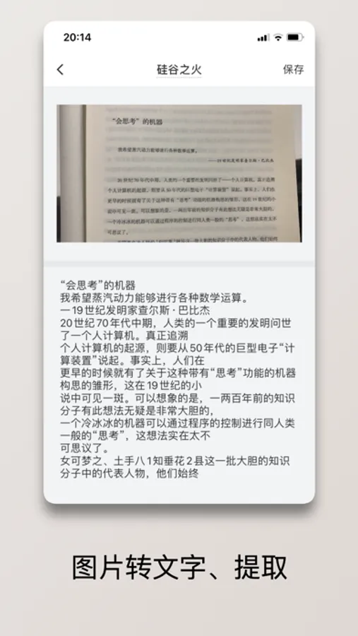 支持中文简体、中文繁体、英语、日语、韩语、法语、德语、俄语、西班牙语等语言的文字识别;并可以提取文字,复制和分享
