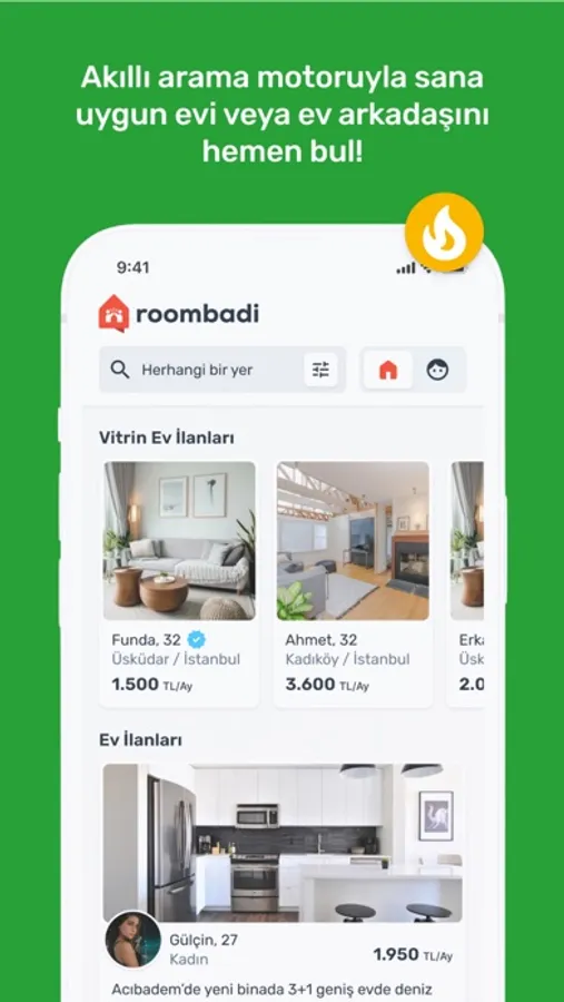 You can also make evaluations from the "suitable roommate ads" section. Listing by location is possible. You can also get faster results with filter and sort options. Then you will see the suitable shared houses in your list. You can find house features and conditions under the profile and also learn the monthly rent fee.