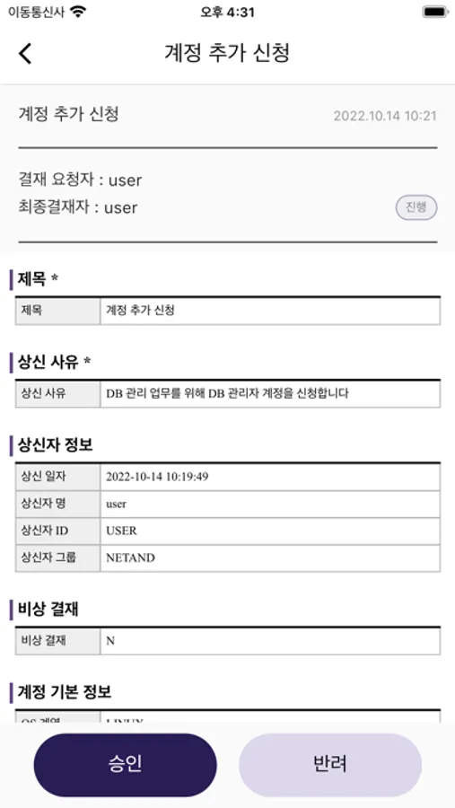 NETAND HIWARE6 의 결재 문서 현황 파악, 결재 수락/반려를 모바일에서 간편하게 할 수 있는 기능을 제공합니다.