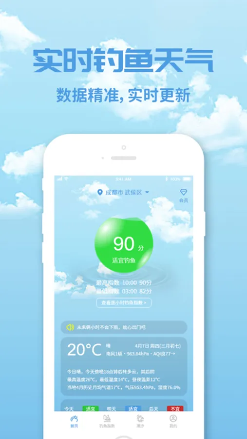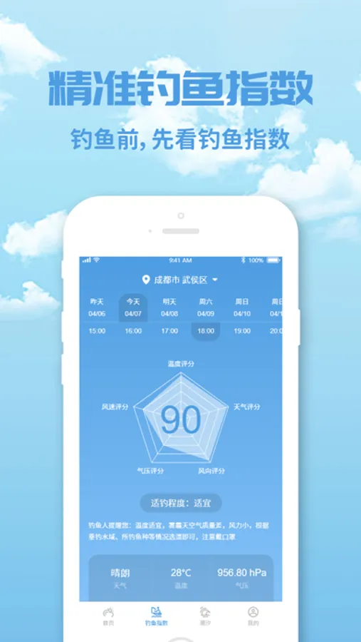 钓鱼天气预报特色: