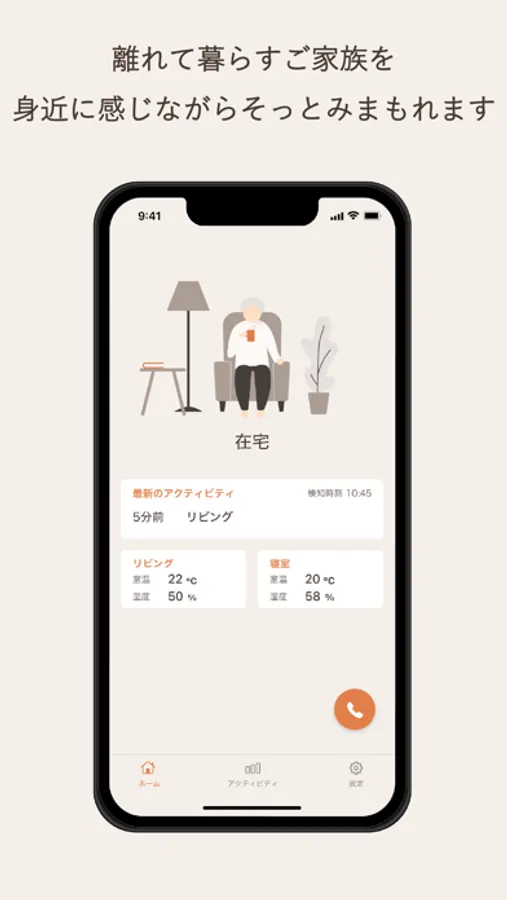 となリモは、離れて暮らすご家族を、身近に感じながらそっとみまもることができるアプリです。