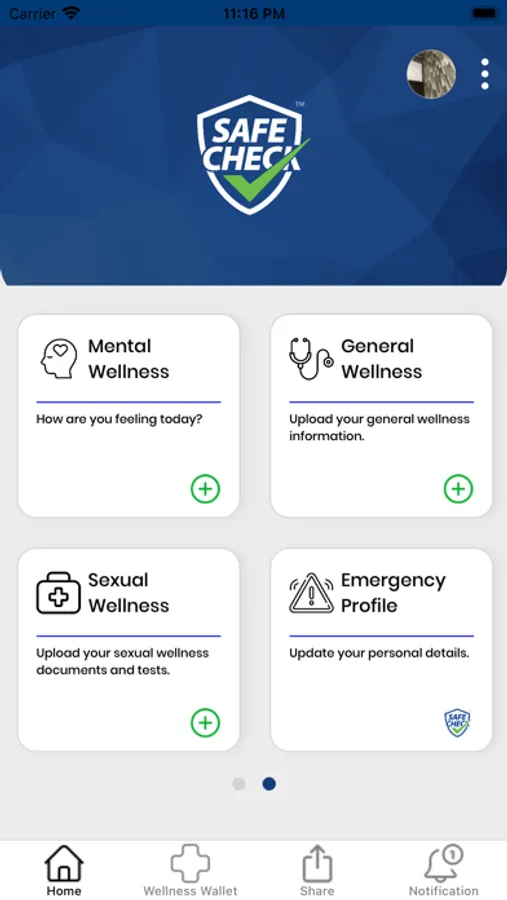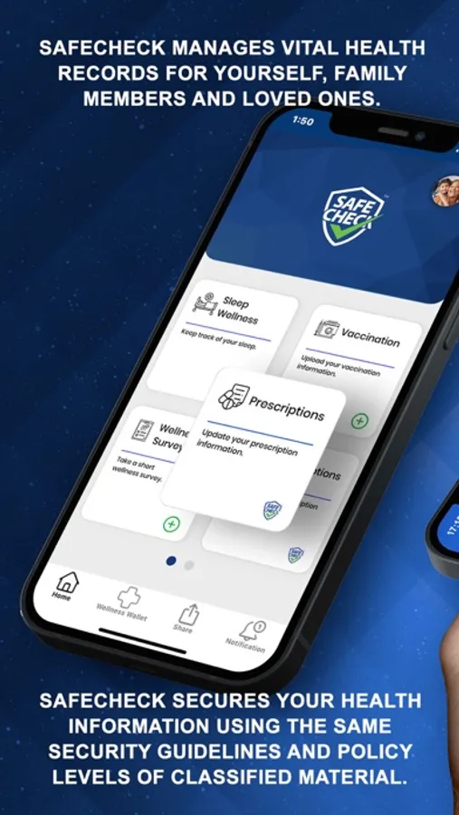 - Medical Data Repository: SafeCheck provides a secure single data core that keeps all your family’s medical records. With the SafeCheck Wellness Wallet, you keep control over sharing this information only with appropriate medical professionals.