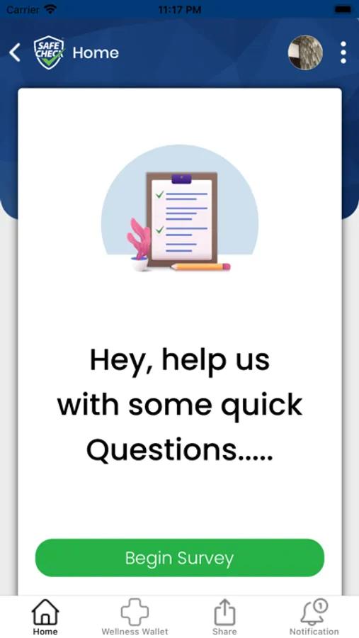 - Wellness Survey – SafeCheck comes complete with a survey that asks questions regarding symptoms should a family member become ill. This anytime access to a symptom questionnaire provides a more accurate picture of the symptoms, as SafeCheck users do not have to recall a host of symptoms hours or days later, when some symptoms may have subsided.
