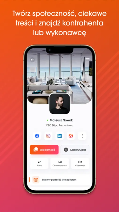 Komunikujesz się z innymi inwestorami i ekipami remontowymi poprzez komunikator.