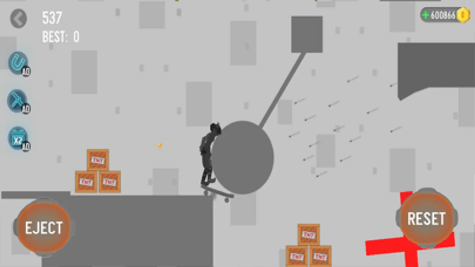 Perform stunts to face deadly traps and obstacles. Hold to increase power and push stickman off the cliff.