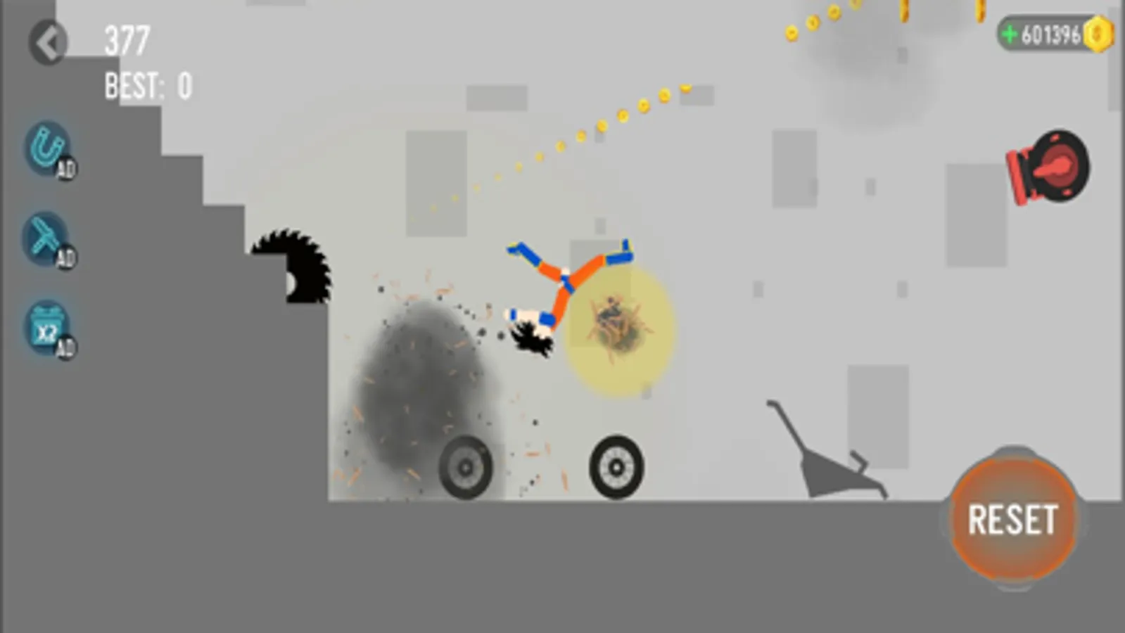 Changing pose and posture, selecting the suitable kits & cars to create unexpected situations for your stickman to fall and break.