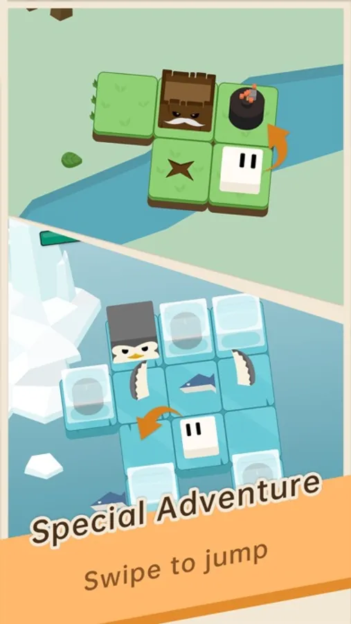 Swipe the screen, play as a piece of tofu, jump between the grids, dodge and reach the goal!