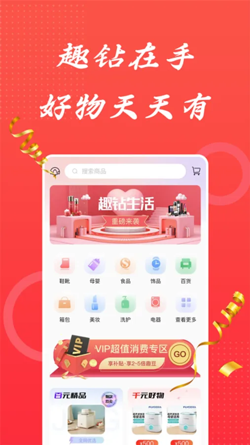 2022年,国傲科技又一精心打造《趣钻生活》 创新模式的品牌直供商城,依托公司强大的供应链和服务体系,实现商品的高效流通,平台以“购物做任务、免费得好物”的新商业理念,为消费者打造一个“趣钻在手、好物天天有”的价值商城。 消费者零门槛免费注册即成为商城的VIP,并可获得平台赠送的10张‘购物券’,购物券可以转换成积分去换取商城相应价值的产品。
