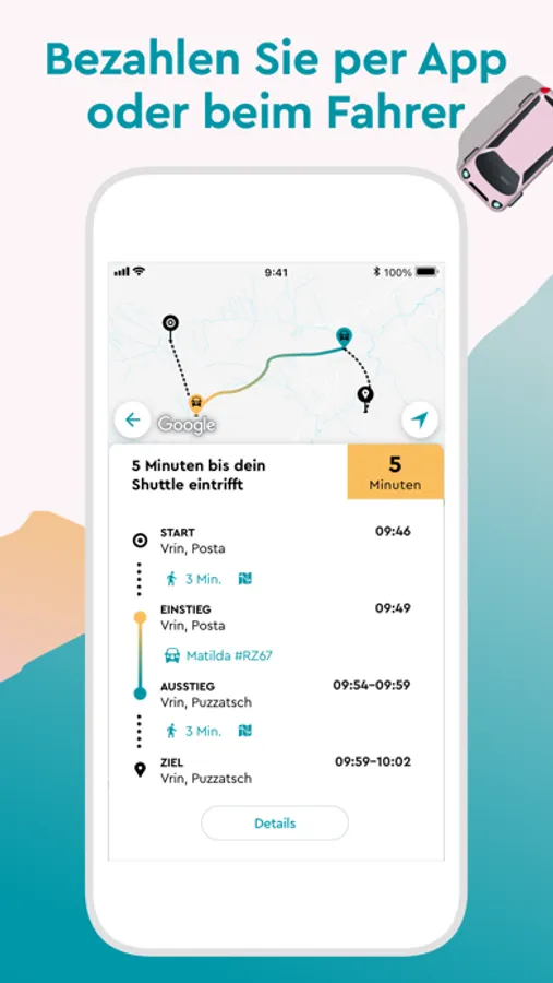 • Reservieren Sie den Kurs und zahlen flexibel per App oder beim Fahrer