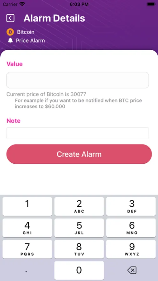 - Price Alarm: This alarm triggers when the price of an asset reaches a specific value that you set.