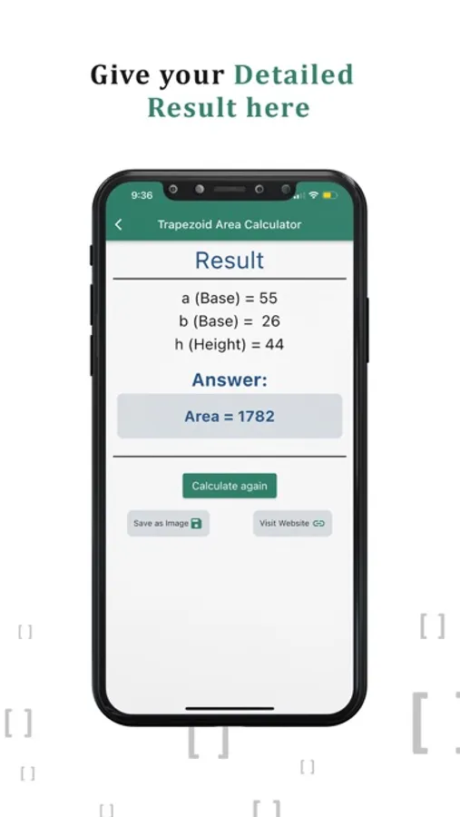 You don’t need to learn the formula to find the trapezoid value. Because this app auto-calculates gave values of Base and Height. You only need to insert the values into their exact field and tap on the compute button. Very quickly you’ll get the accurate answer in microseconds with this calculator.