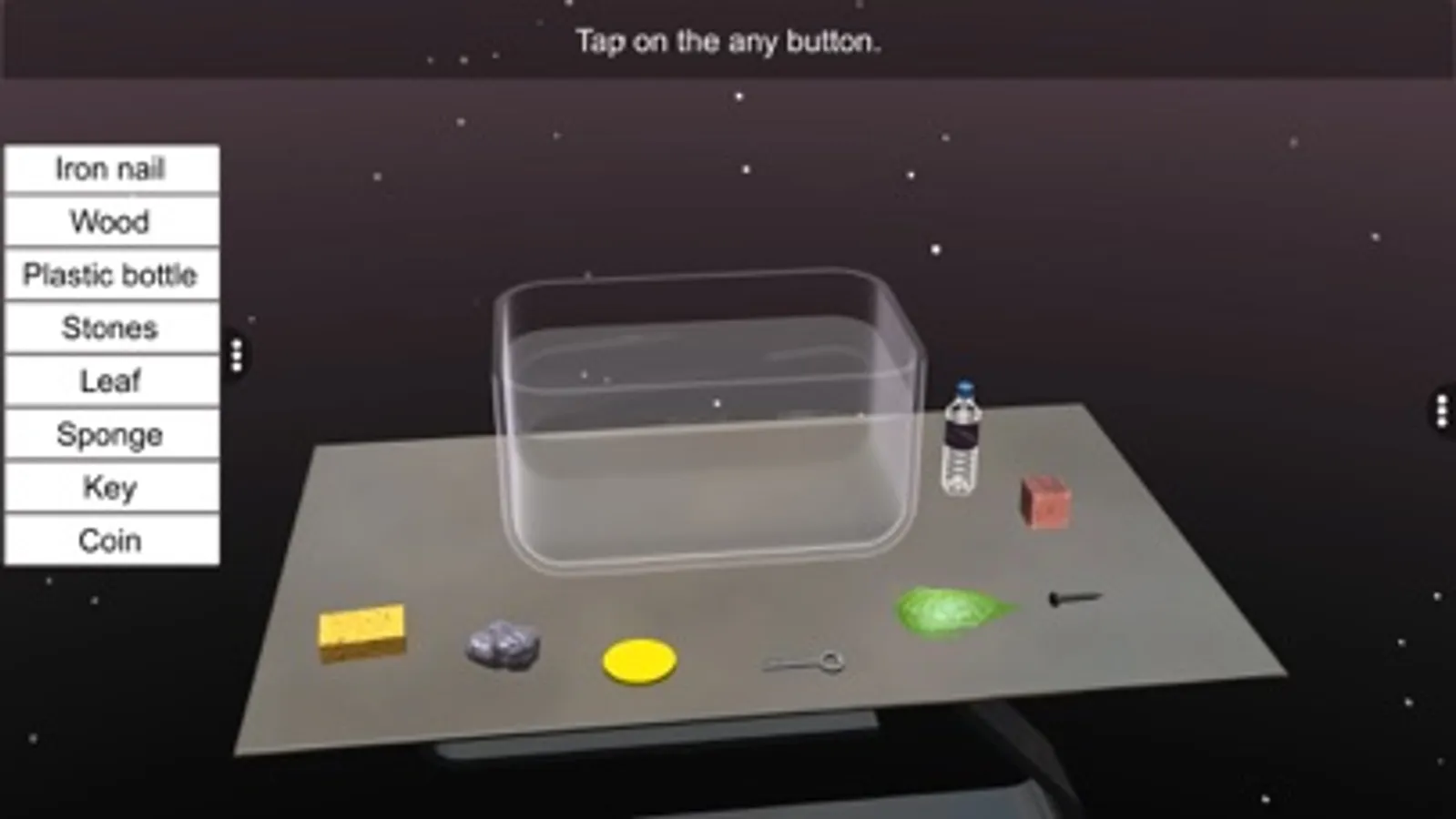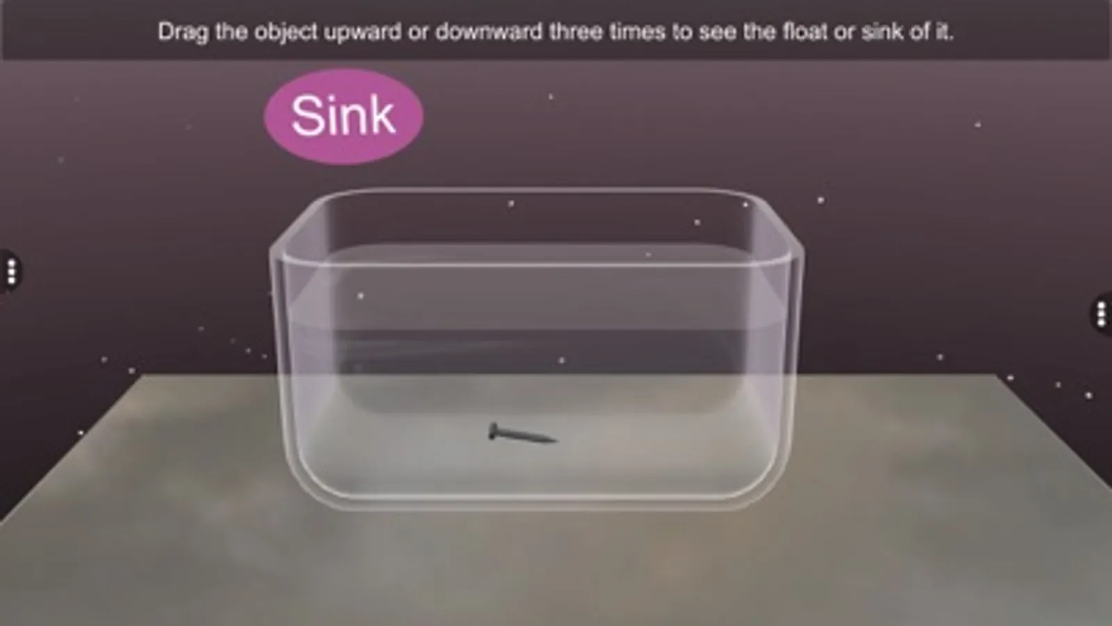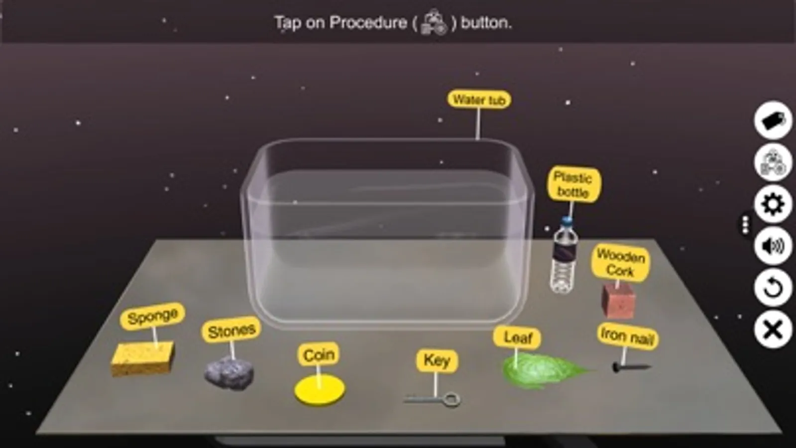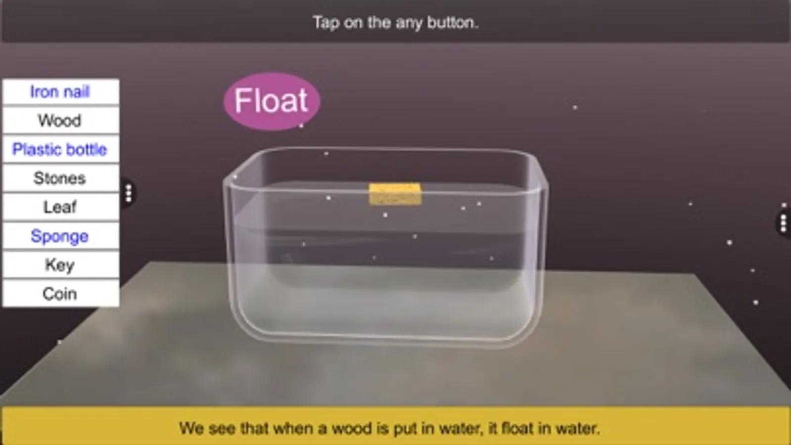 - Tap and Pinch Zoom - zoom into and identify about objects float or sink in water.