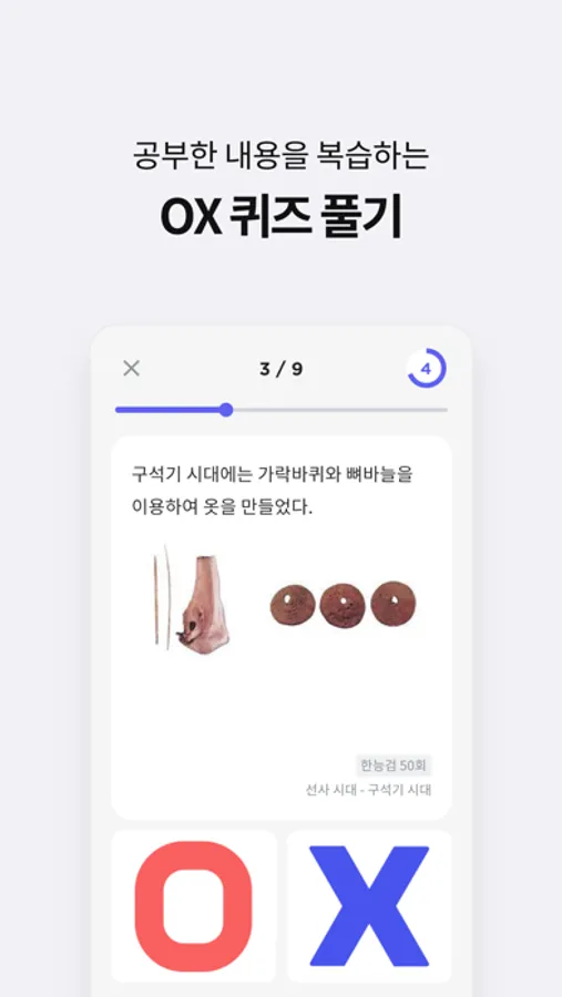 한능검 강의와 관련된 OX퀴즈를 풀고 공부한 내용을 리마인드 하세요.