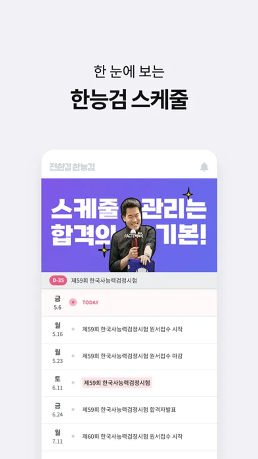 앱에서 한능검 스케줄을 한 눈에 확인하세요.