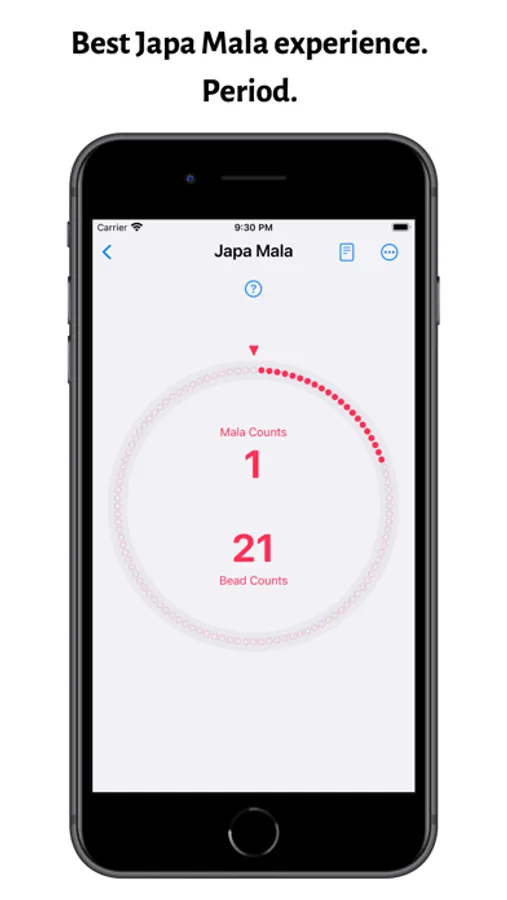 - An intuitive Japa Mala with animation and haptics. Simple and beautiful chart showing daily Japa Mala activity.