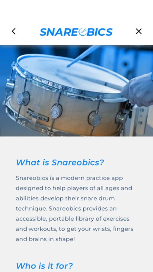 Snareobics caters for everyone from the beginner drummer to the seasoned professional; all you need is a pair of sticks, a pad or snare drum and your device!
