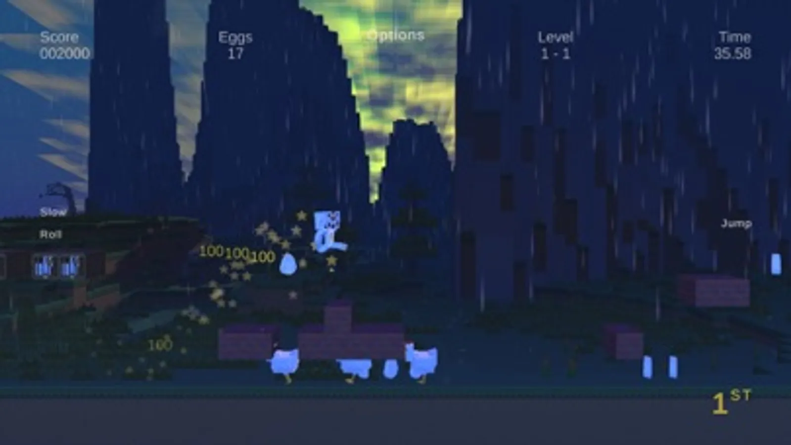 Chicken Runner is a platformer where you race against local friends over Wifi or online opponents on the internet.