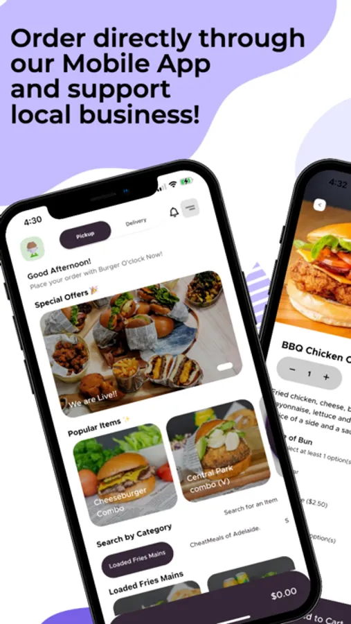 Download the Burger O’Clock App today to gain access to our full menu, order through the app, receive exclusive in-app discounts and gain reward points for each order to use on future purchases!