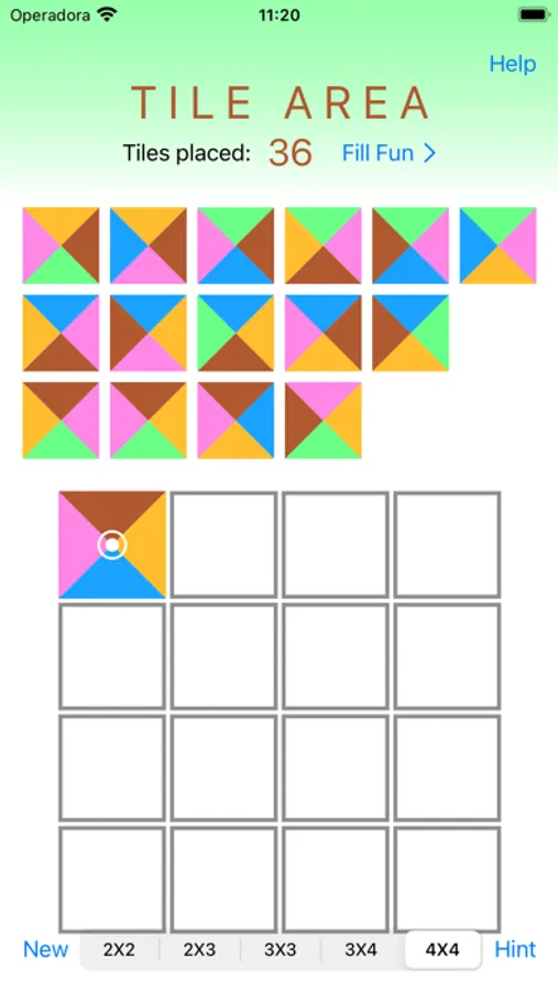 Tile Area is a fun puzzle to play. The aim is to fill the area with the given tiles. Each tile has four different colors and adjacent tiles in the area must have the same color on the common side. There is only one possible solution for each game and an unlimited number of games for you to play.