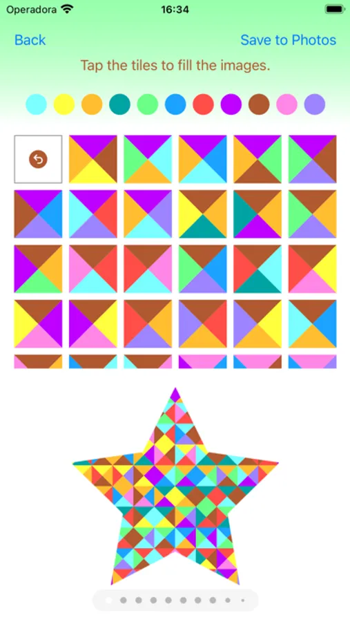 The tiles you placed in each game will be stored and can be used to fill images just for fun, without rules. The beautiful filled images can be saved to your photo library and be filled again with different tiles.