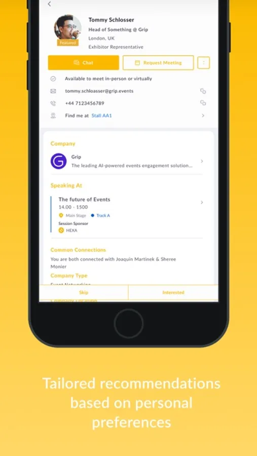 Get relevant networking suggestions based on your interests maintained in your profile and easily explore, expand, and interact with your business network.