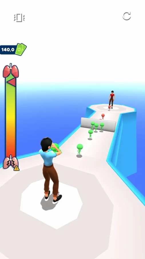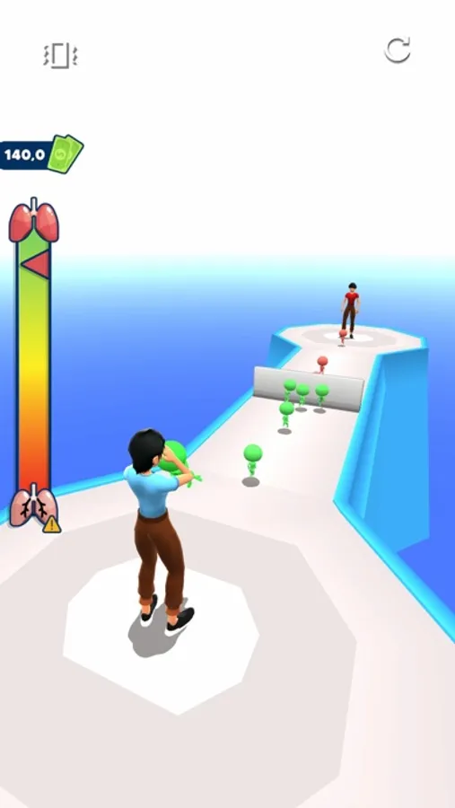 Press and hold the screen and inflate the balloon. The more you inflate the balloon, the stronger your warrior will be, but the level of inflation is as much as your breath.